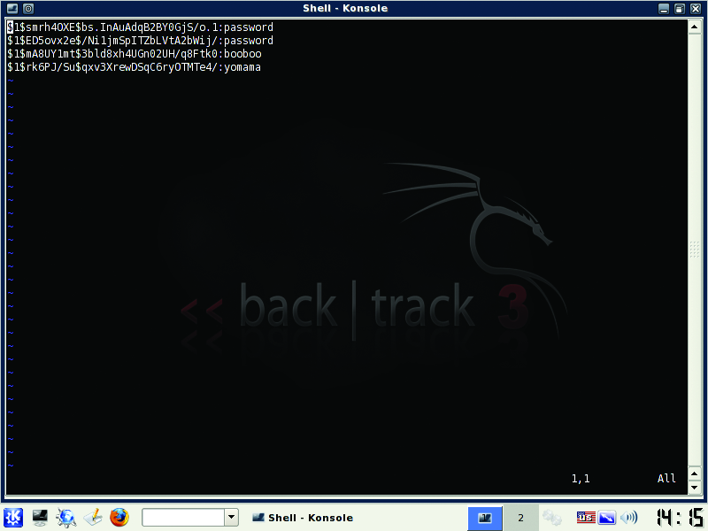 Within a few minutes, you should see any simple passwords displayed. More complex passwords will take longer, based on various factors, such as complexity, system performance and the use of word lists.